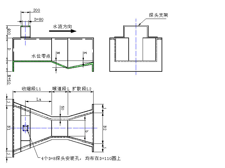 注:巴歇爾槽支架處為水流上游。