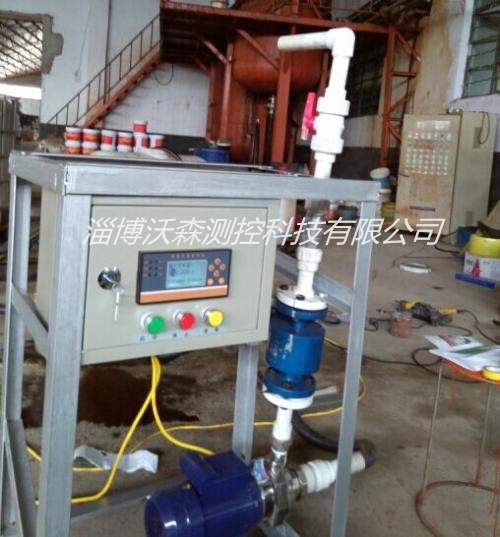 通過流量計測量流量 ,控制儀表接收信號,在控制儀表里設置定量值。定量值達到后電磁閥、水泵 斷電停止工作。
